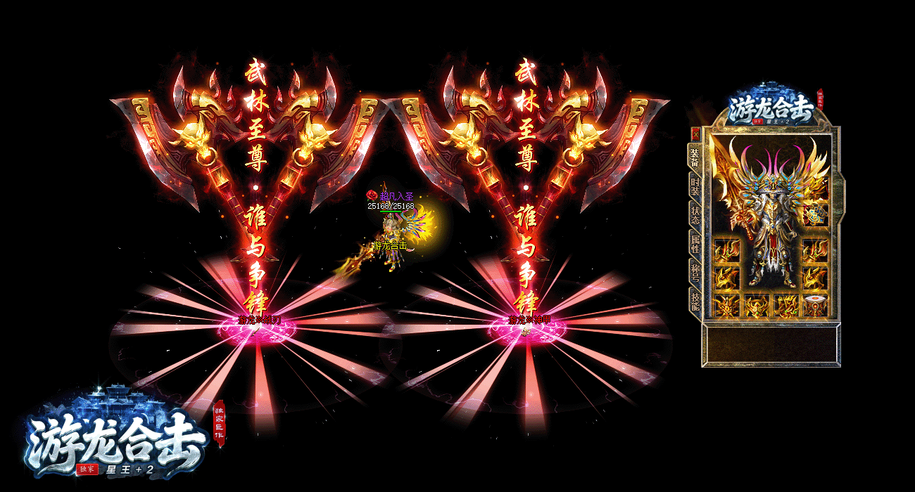 - ▶【游龙合击】:装备等级:雷霆→战神→星王→傲世→游龙(终极),所有装备全部爆